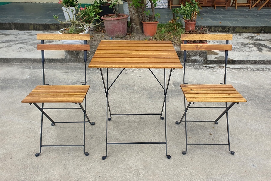 - Folding garden set, wooden table and wooden chair with metal frame